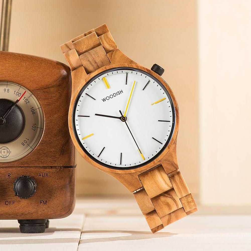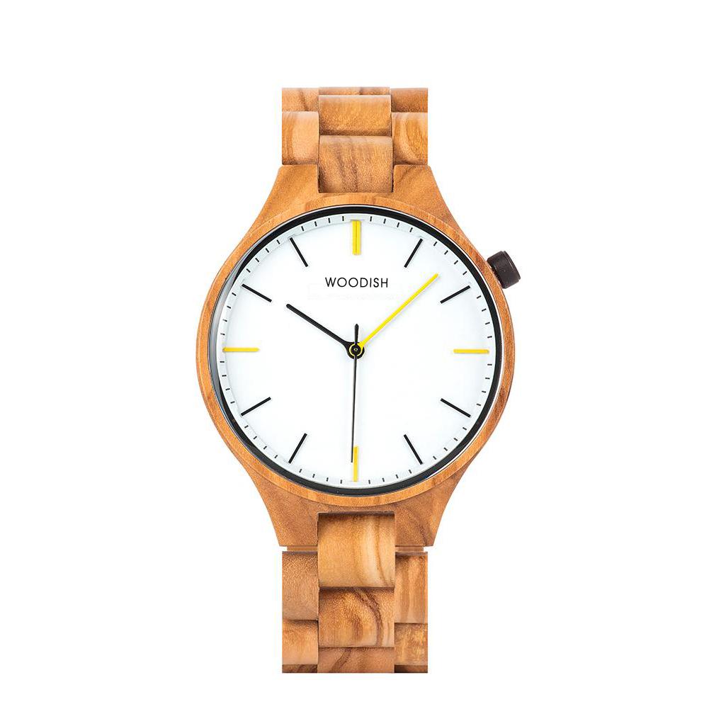 A minimalistic wooden wristwatch with a sophisticated dial. It has a plain, solid dial with ivory accents. The texture of the wood is the highlight of this wristwatch as it exudes luxury and class. It’s relatively lighter than stainless steel watches, making it comfortable to wear all day. No matter what your personal style is, you can easily incorporate this into your look with its classy features and simple aesthetic. You can choose from three beautiful finishes: oak, walnut, and maple.